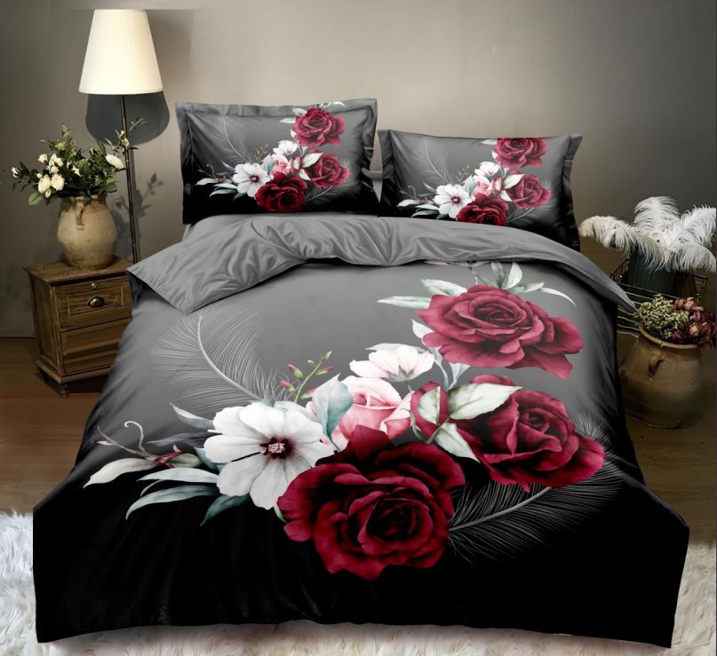 200X220 Komplet pościeli z prześcieradłem w kwiaty
