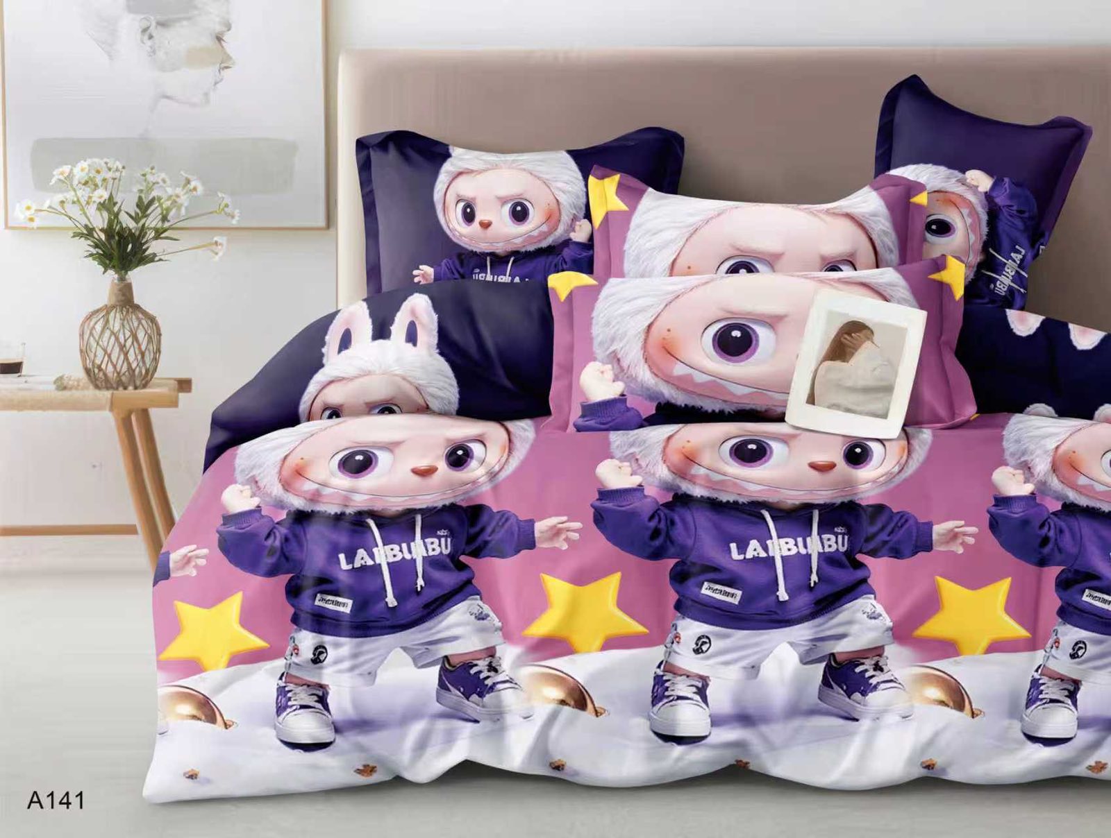 160×200 Komplet pościeli z prześcieradłem Labubu