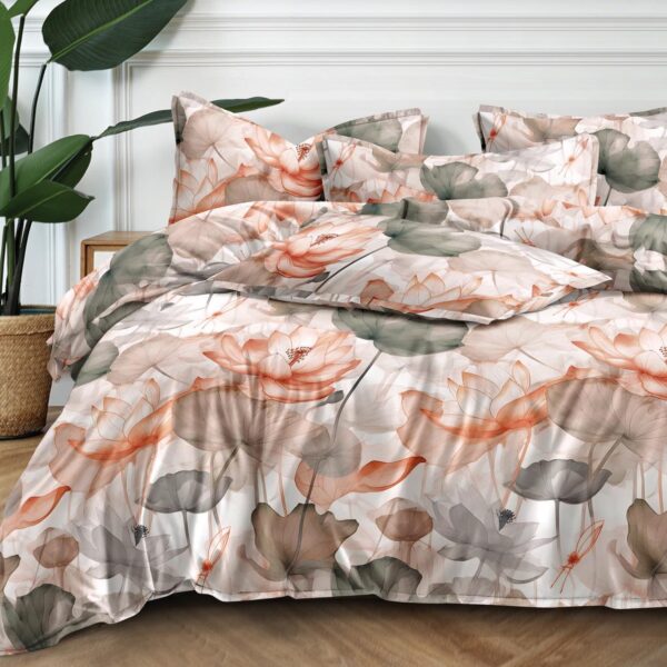 Pościel wykonana z miękkiego i przyjemnego w dotyku materiału satyny bawełnianej, który zapewnia komfort snu oraz łatwość w codziennej pielęgnacji.