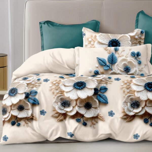 160×200 Komplet pościeli dwustronnej z prześcieradłem w kwiaty