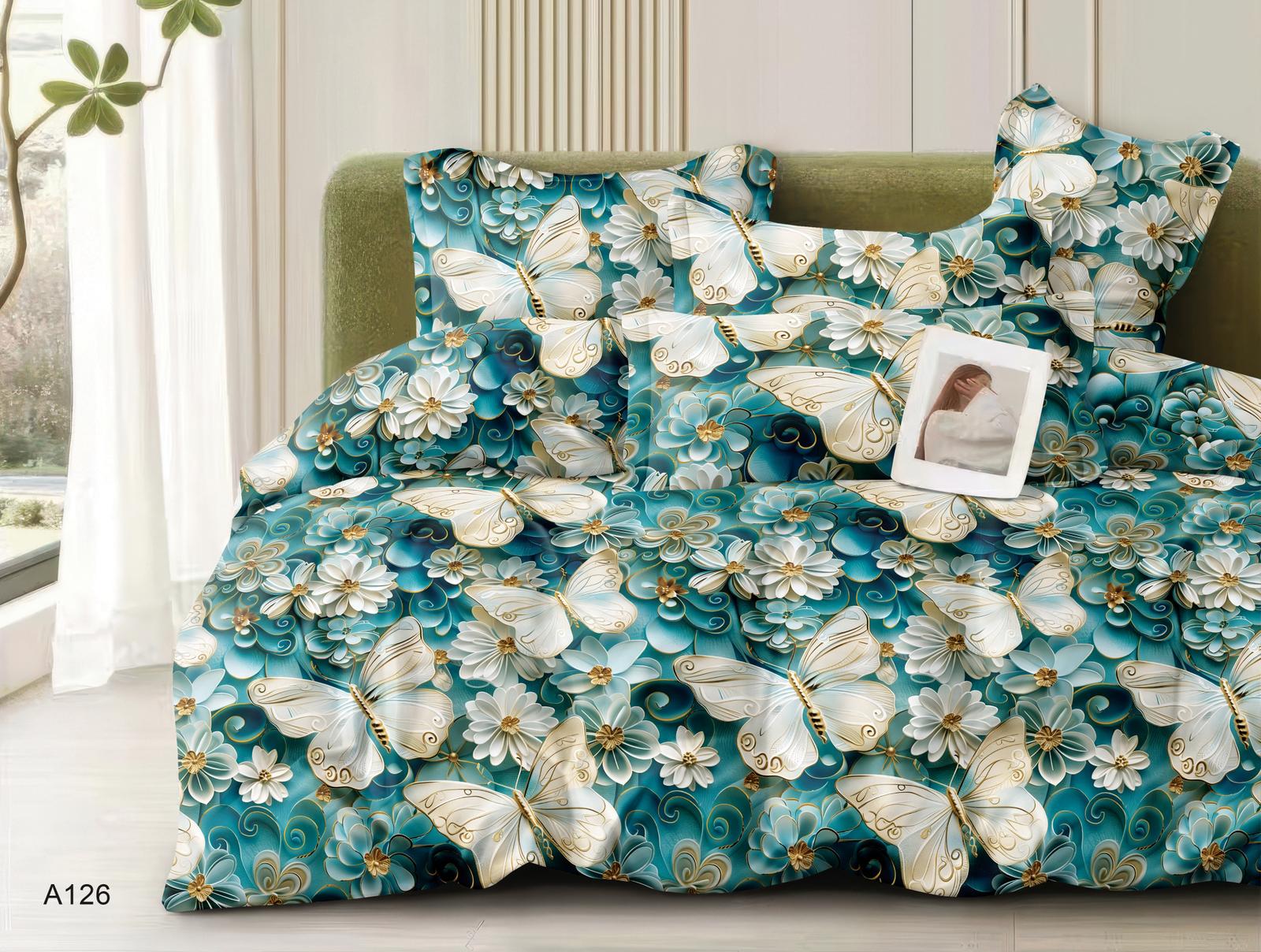 180×200 Komplet pościeli z prześcieradłem w motyle i kwiaty