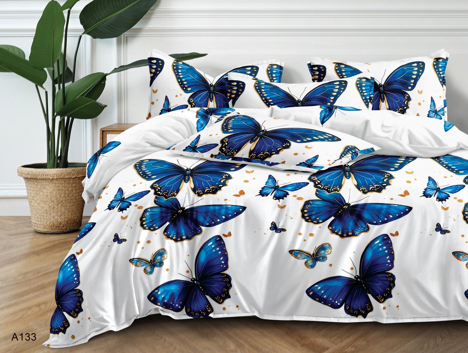 180×200 Komplet pościeli z prześcieradłem w motyle
