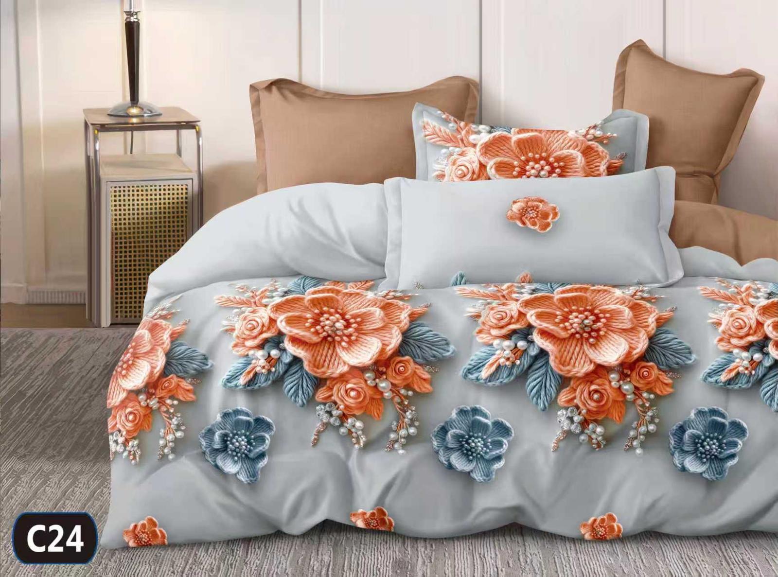 180×200 Komplet pościeli z prześcieradłem w kwiaty