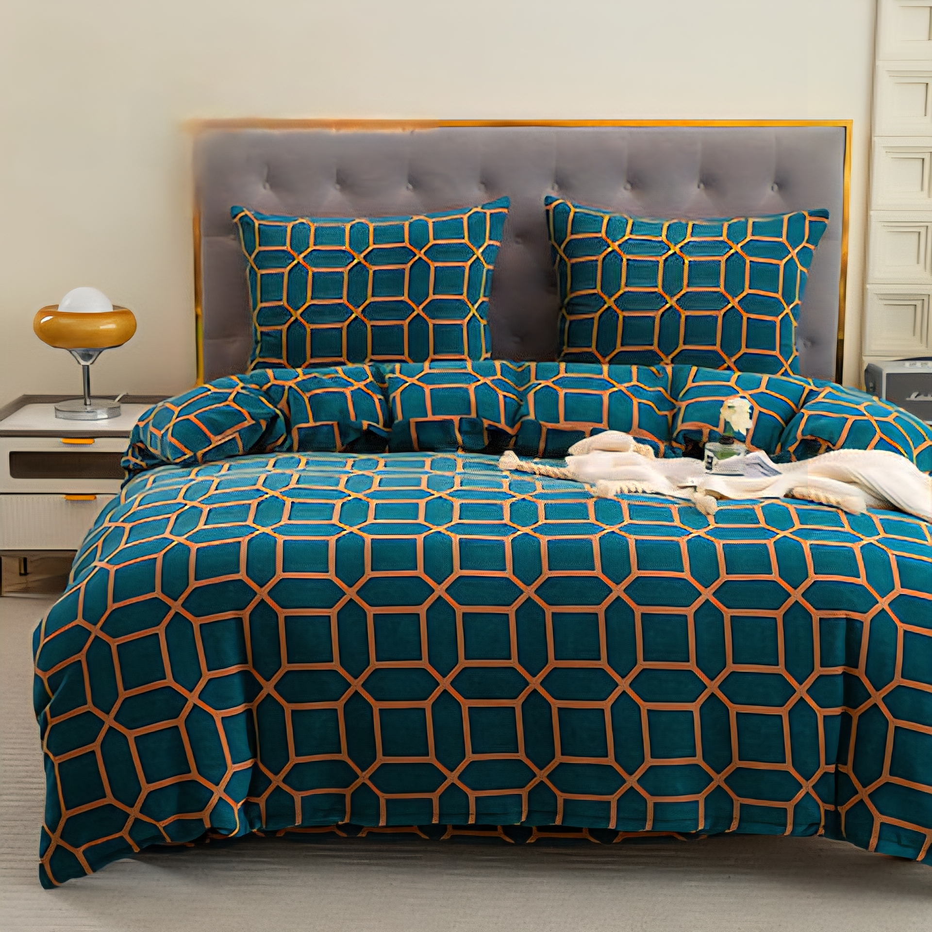 160×200 Komplet pościeli z prześcieradłem wzór geometryczny