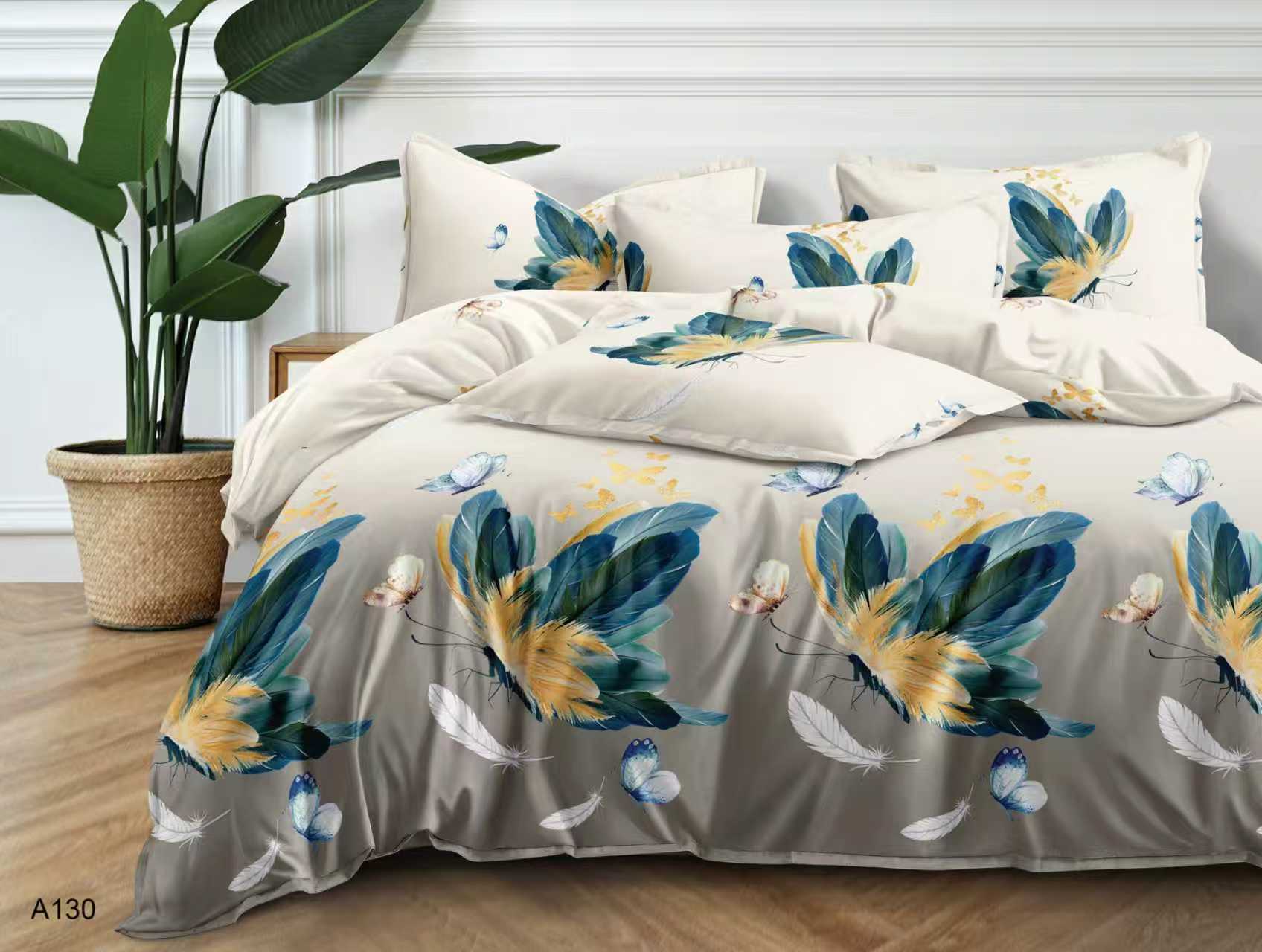 180×200 Komplet pościeli z prześcieradłem w motyle