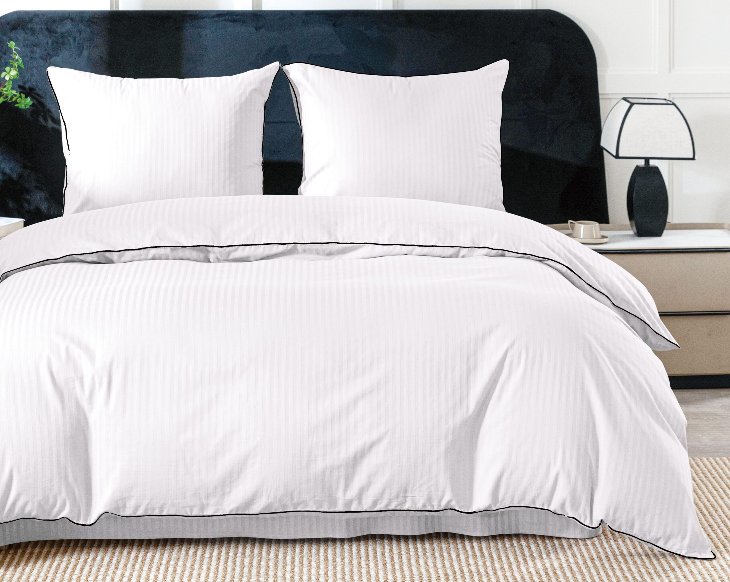 Elegancka pościel bawełniana w pasy 160×200 z ozdobną lamówką